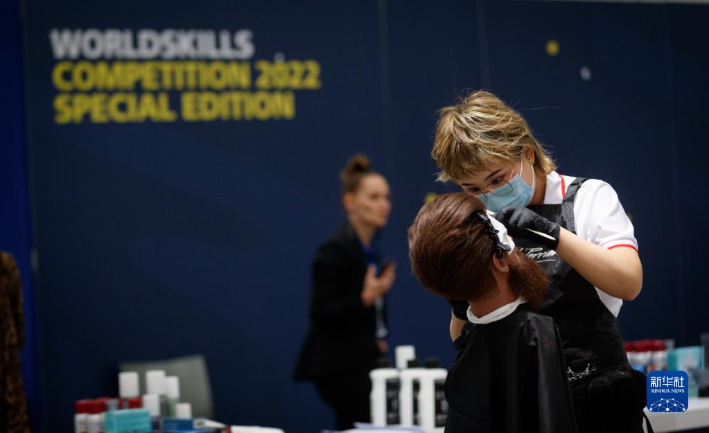 10月23日,获得美发项目银牌的杭州轻工技师学院沈文青在芬兰首都赫尔辛基参加2022年世界技能大赛特别赛芬兰赛区比赛。新华社发(卡勒·帕尔基宁摄)
