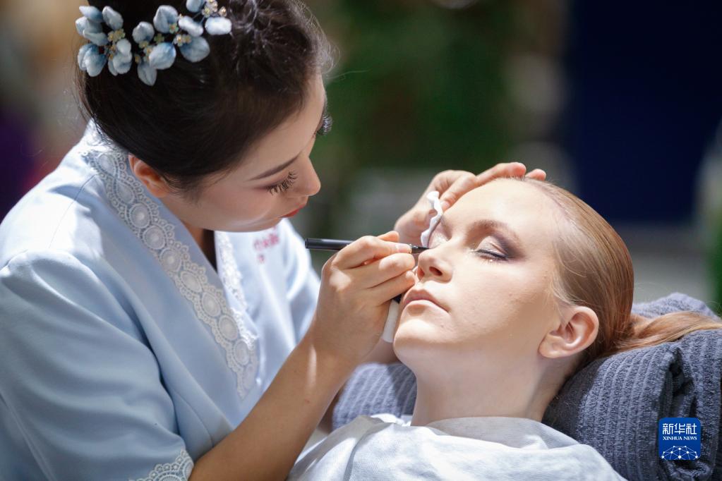 10月23日,获得美容项目金牌的重庆城市管理职业学院王珮在芬兰首都赫尔辛基参加2022年世界技能大赛特别赛芬兰赛区比赛。新华社发(卡勒·帕尔基宁摄)