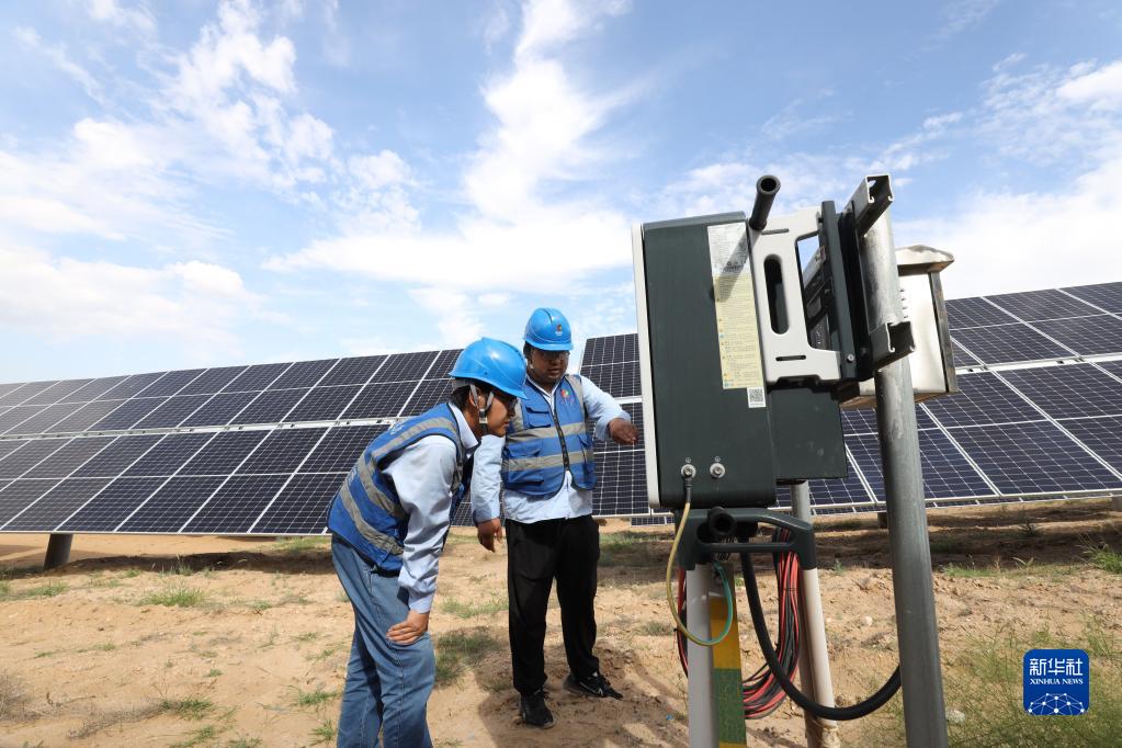 国家电投五凌电力余丁光伏电站职工在检修设备(2022年8月31日摄)。新华社记者 卢鹰 摄