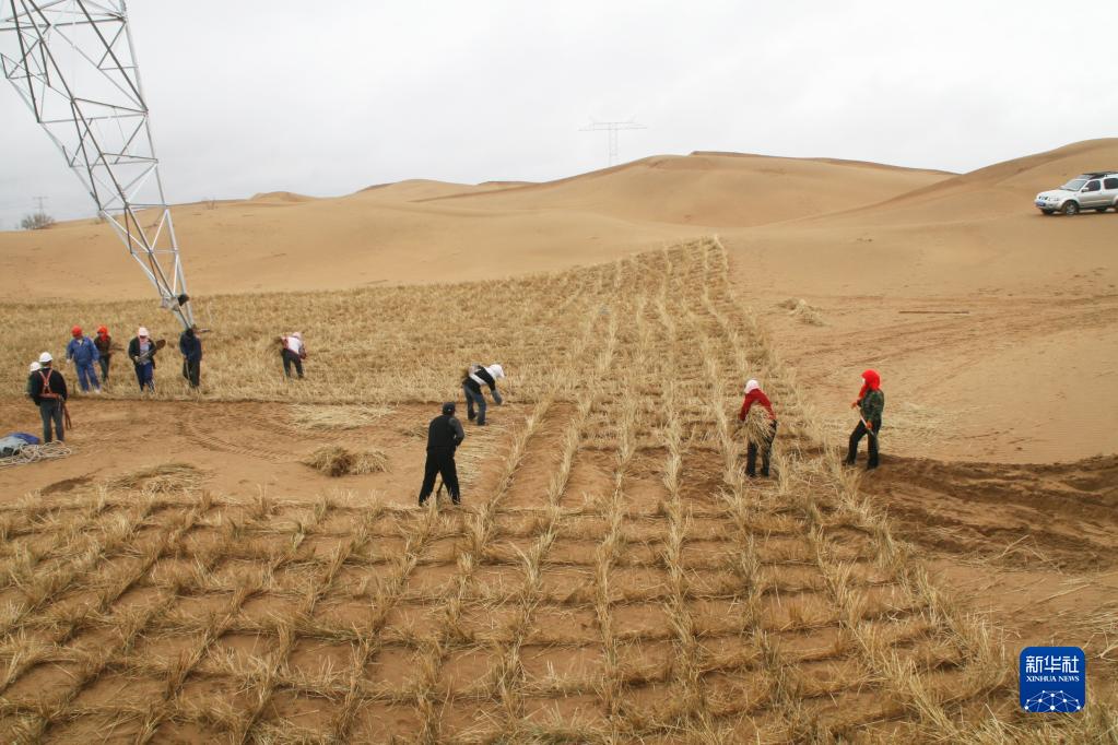近年来,当地通过扎草方格把流动沙丘改造成固定、半固定沙地,再在草方格中栽植白柠条,撒播沙蒿等混合种子,逐步恢复塔下的植被……生物固沙模式有效解决了风沙侵害塔基、线路的问题,为电力安全输送提供了保障。