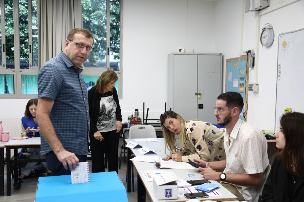 11月1日,人们在特拉维夫一处投票站参与议会选举投票。新华社发(吉德翁摄/基尼图片社)