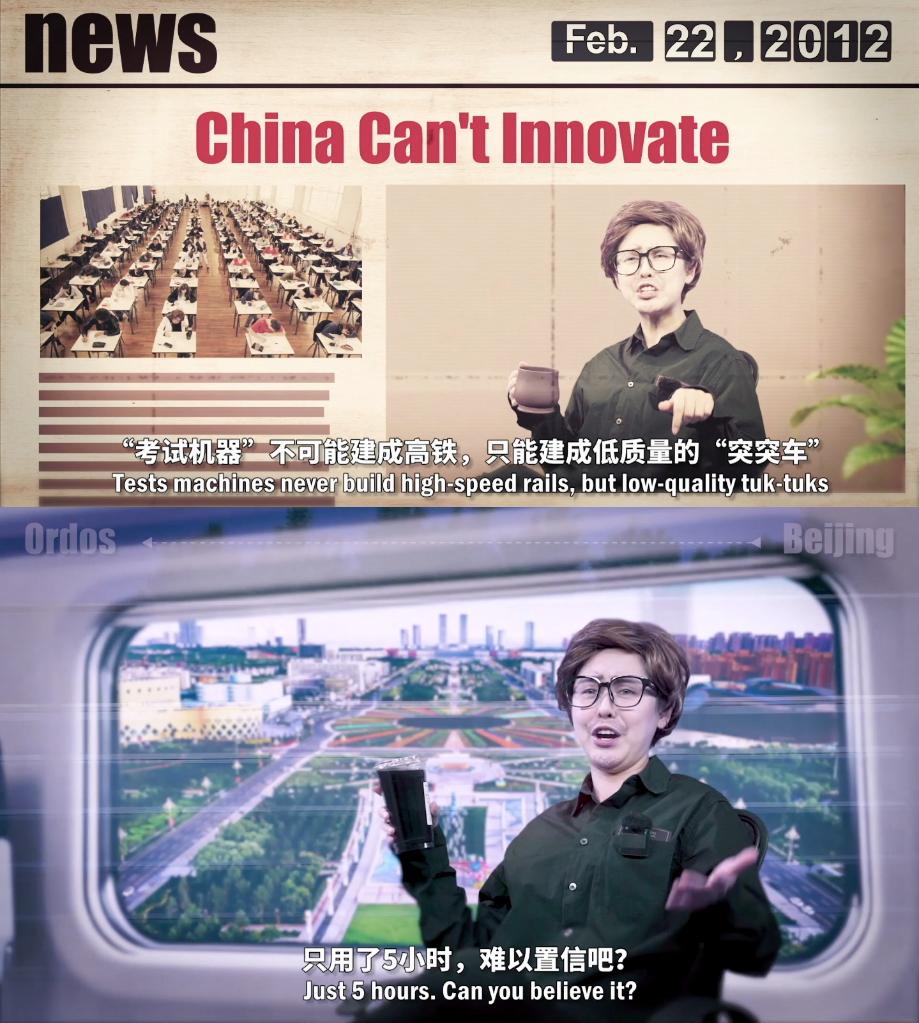 剧中,某外媒驻华首席记者鲍勃搭乘高铁去了内蒙古自治区鄂尔多斯市,感叹中国高铁速度之快、票价之惠、沿途风景之美。而十年前的他还声称,中国高铁是“低质量的突突车”和“破铜烂铁”……