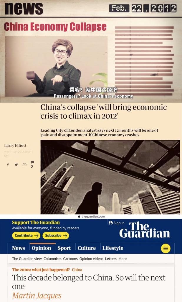 此类唱衰中国经济的声音并不少见。英国《卫报》2012年1月11日刊登文章称:“全球经济危机将在2012年达到高潮,而核心标志是中国经济的崩溃。2013年和随后的日子只会更糟糕。”