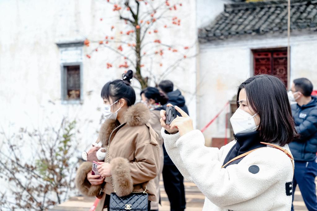 在江西省上饶市篁岭景区,游客们正在拍照游玩。(受访者供图)