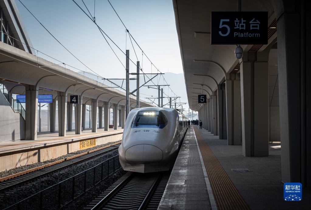 12月16日,首班列车驶出红河站。新华社记者 王冠森 摄