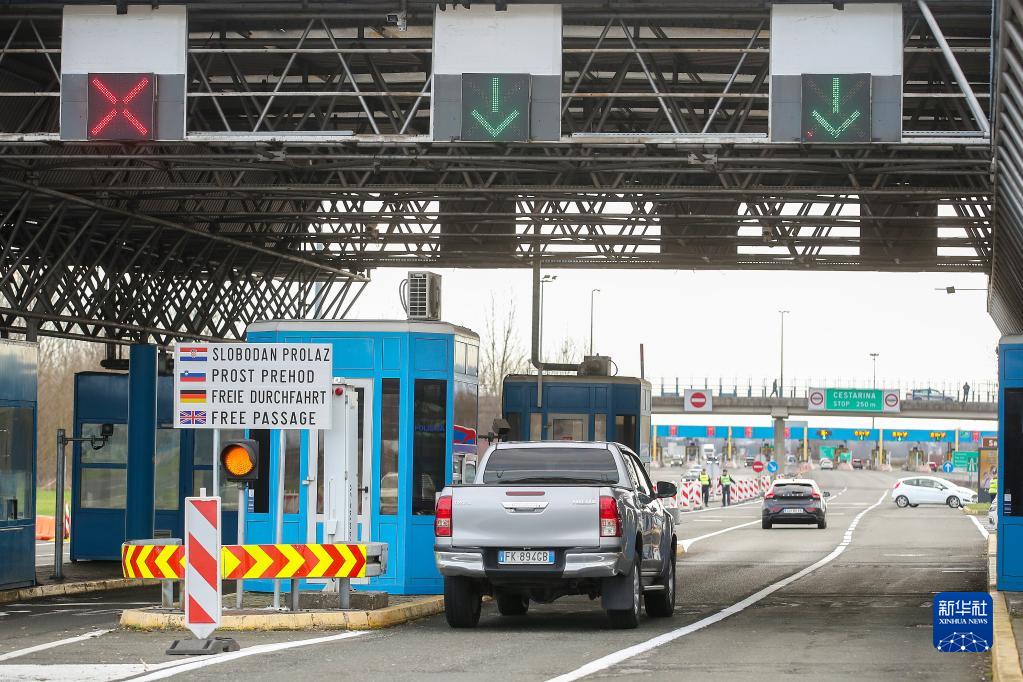 1月1日,车辆在克罗地亚与斯洛文尼亚边境的布雷加纳边防检查站通行无阻。新华社发(Pixsell图片社/卢卡·施坦茨尔摄)