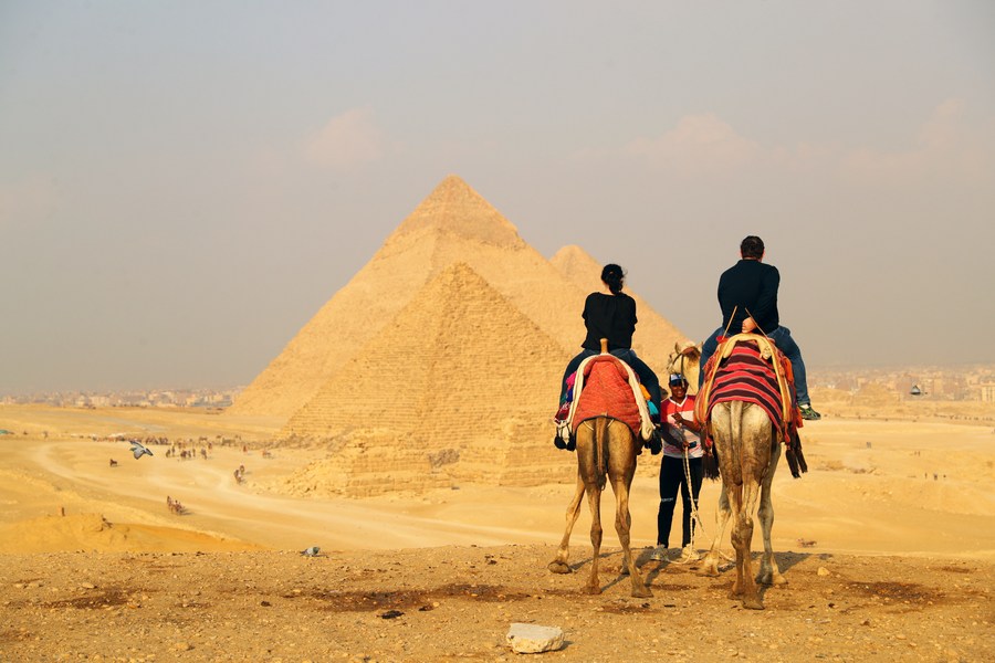 2022年12月22日,游客在埃及吉萨金字塔景区游览。埃及已进入冬季旅游旺季。(新华社记者隋先凯摄)
