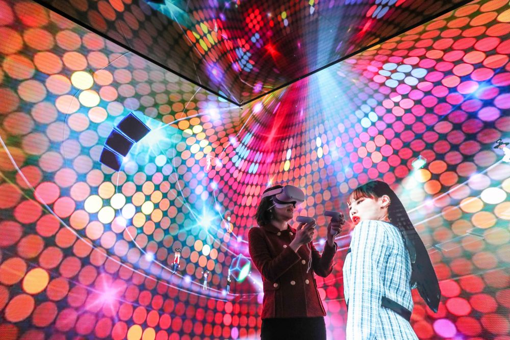 2022年3月1日,一名女子在西班牙巴塞罗那2022世界移动通信大会上通过虚拟现实技术在“元宇宙”中体验音乐会。