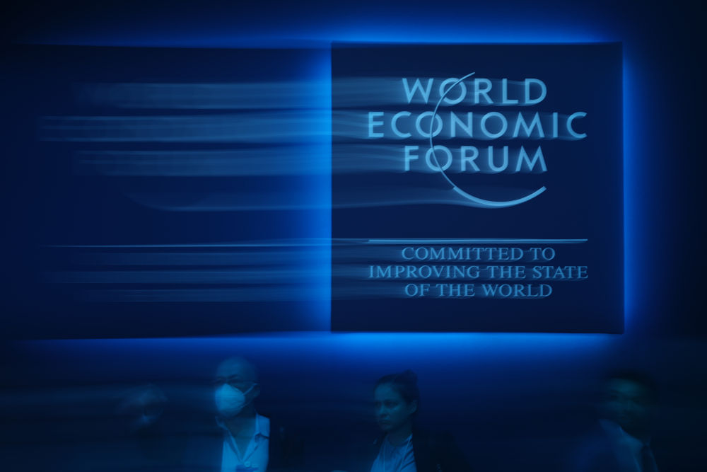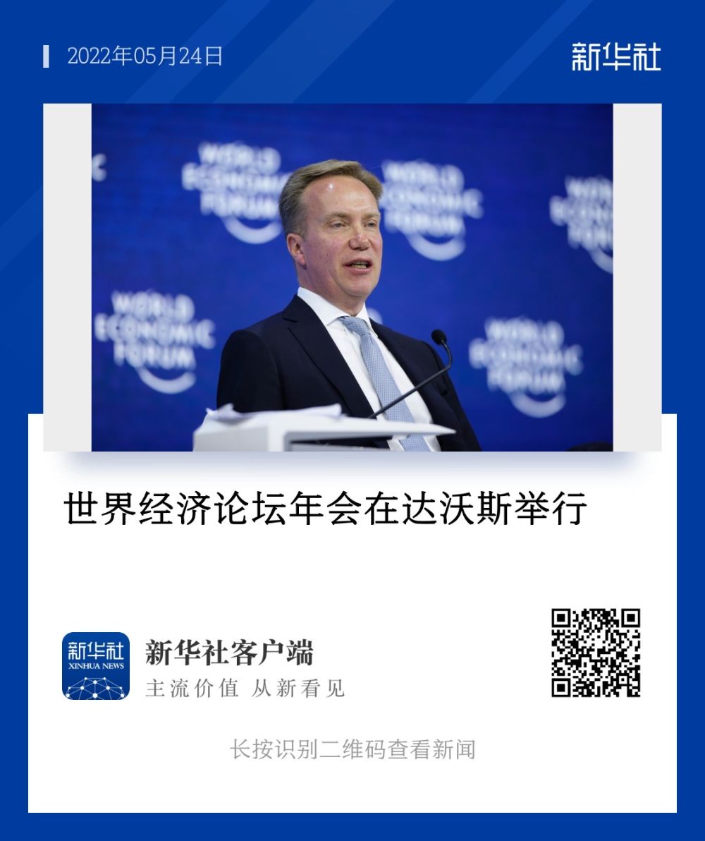 2022年5月21日在瑞士达沃斯拍摄的世界经济论坛2022年年会标识。