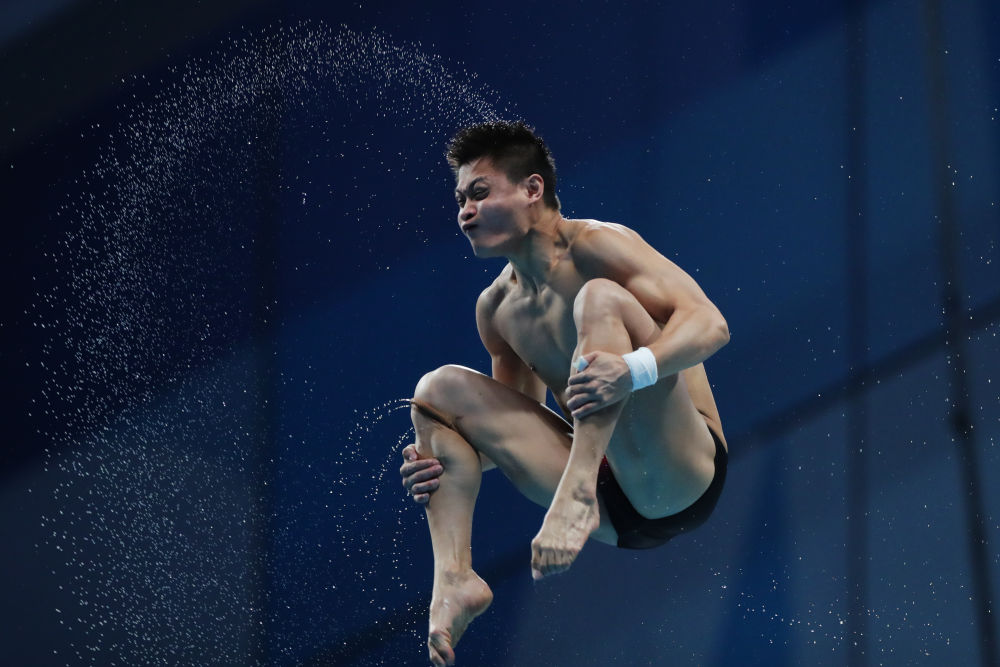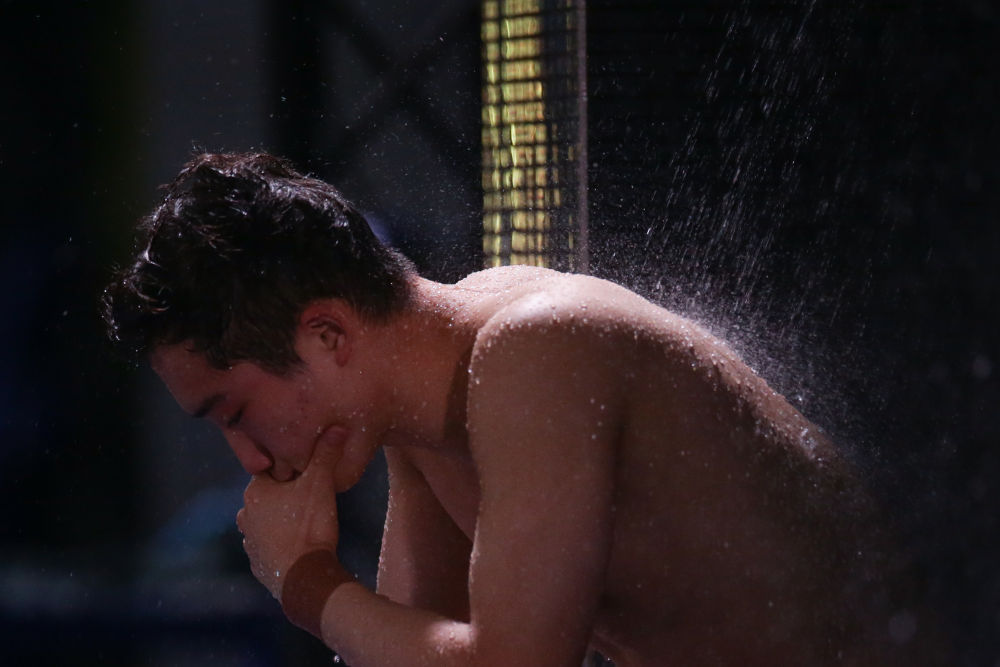2022年6月30日,王宗源在匈牙利布达佩斯举行的2022年世界游泳锦标赛跳水项目男子1米板预赛间隙。