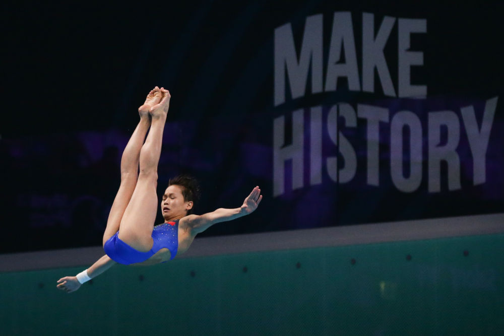 2022年6月29日,全红婵在匈牙利布达佩斯举行的2022年世界游泳锦标赛跳水混合全能决赛中。