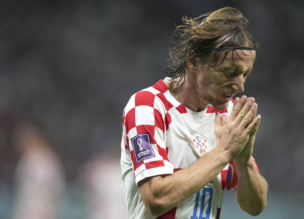 2022年12月5日,克罗地亚队球员莫德里奇在2022卡塔尔世界杯足球赛八分之一决赛中。