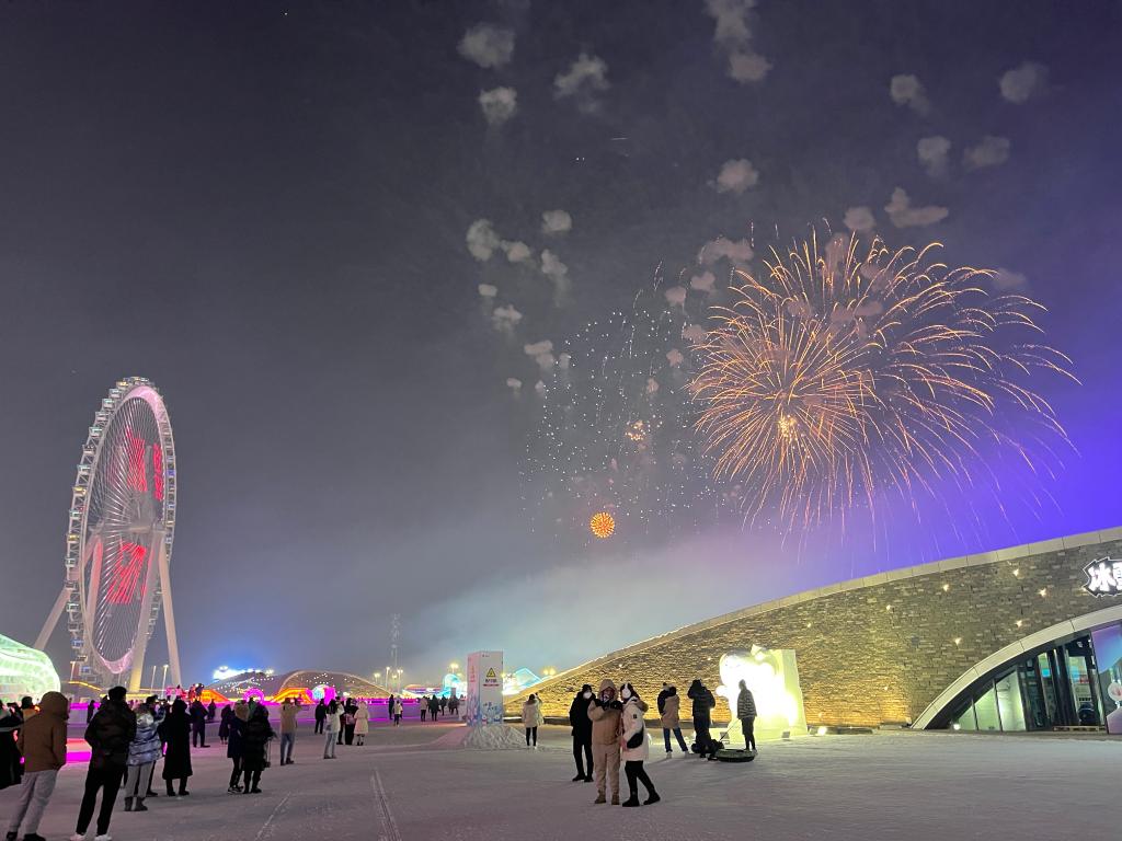 1月5日,哈尔滨冰雪大世界上演烟花秀。新华社记者杨思琪 摄