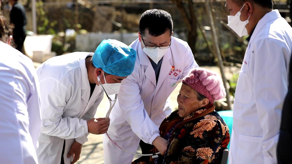 测量体温、血压和血氧饱和度,对心脏、肺部听诊,询问用药情况……普定县人民医院心血管内科医生冉康平对王发英进行了一系列检查,叮嘱老人按时服用降压药,并向老人及其家属介绍饮食和护理注意事项。“医生和村里的干部经常来家里看望我,需要服药时,村卫生室就可以买到,我很安心。”王发英说。