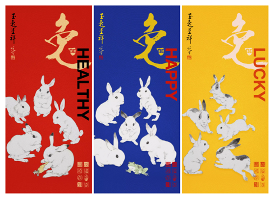 设计取材时围绕“吉祥玉兔”的角度进行展开,挖掘书画作品中动人的小细节。设计作品尝试把传统文化所寄寓的美好祝福装进红包,并通过现代化生活的方式传递到我们身边,与亿万华人及全球朋友一起怀揣美好心愿跨入农历新年。
