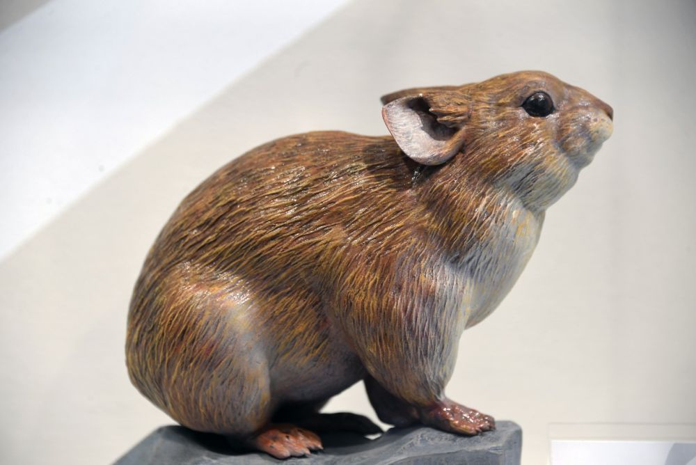 中国古动物馆《“兔年话兔”——兔年特展》中的安徽模鼠兔复原像。新华社记者 任超 摄