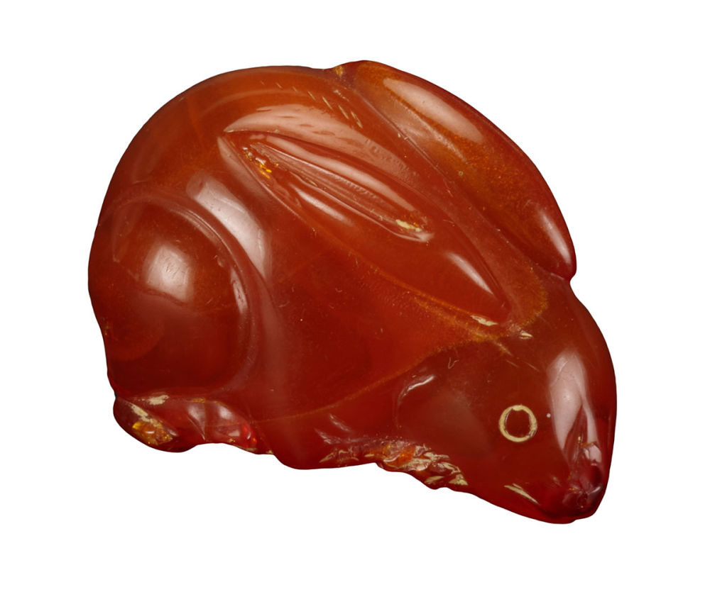 中国国家博物馆“癸卯金安——二〇二三新春展”展出的琥珀兔。(中国国家博物馆供图)
