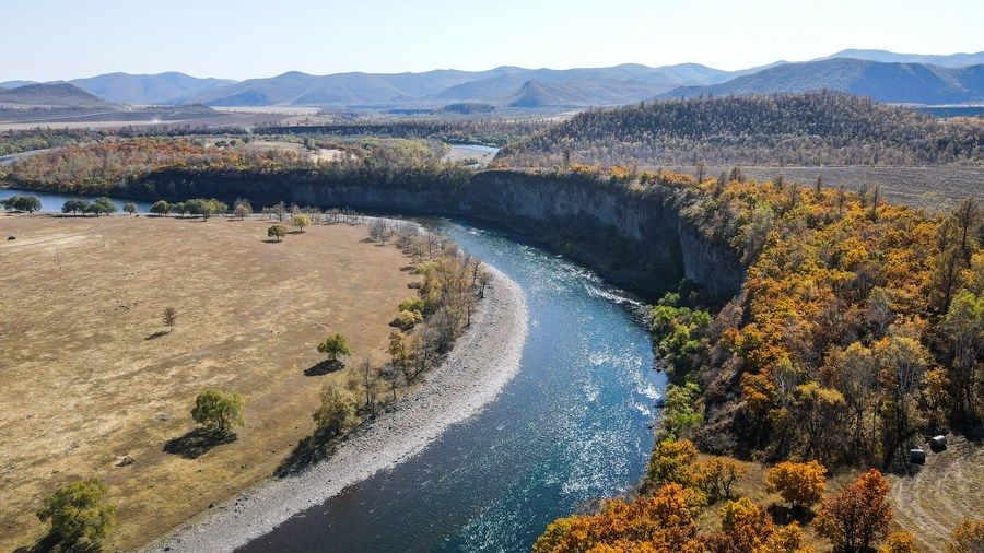 ↑2022年9月27日在扎兰屯市柴河镇拍摄的十大湾秋日风光。