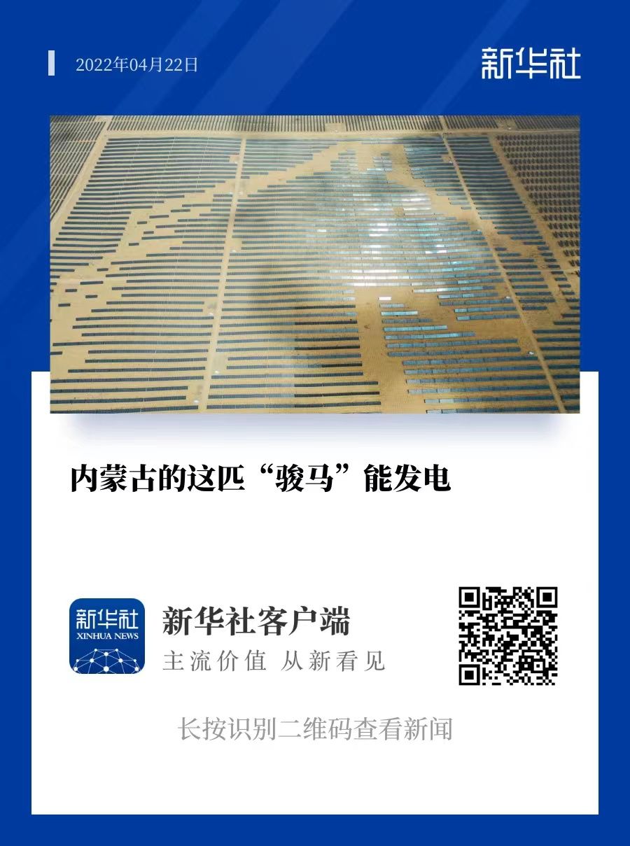 ↑这是2022年4月21日在达拉特光伏发电应用领跑基地拍摄的“骏马电站”。 新华社记者 刘磊 摄