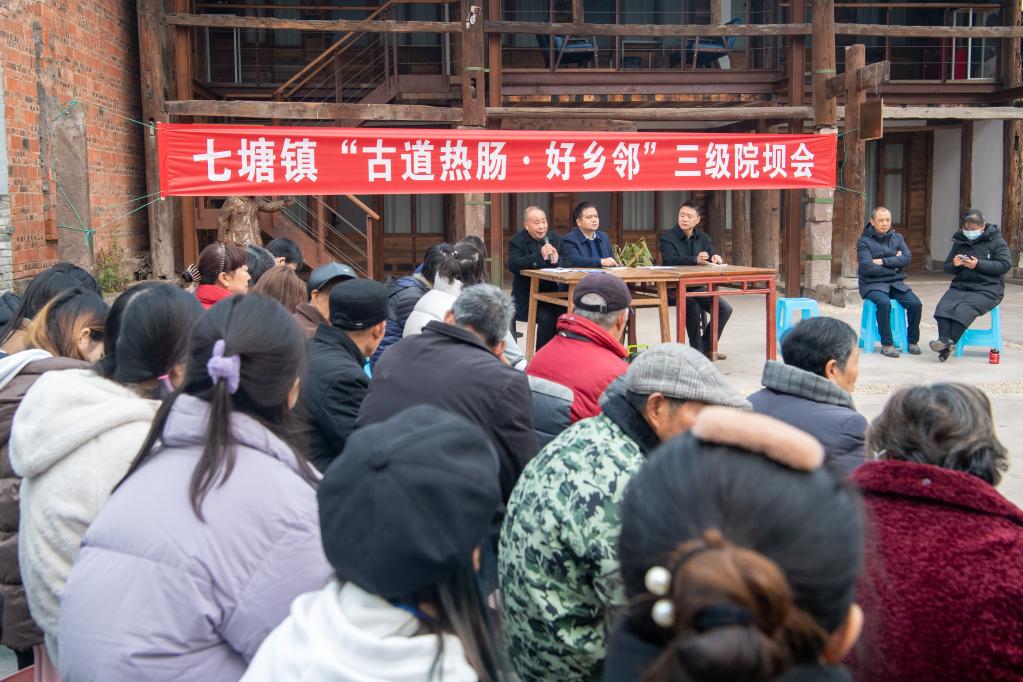 2月3日,重庆市璧山区七塘镇将军村“三级院坝会”上,村民、商户、干部正在一起交流讨论。新华社记者唐奕 摄