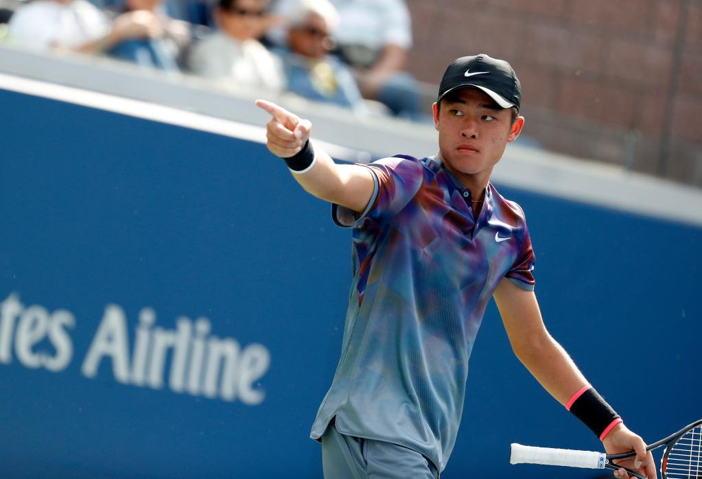 ↑2017年9月10日,在2017美国网球公开赛青少年组男单决赛中,吴易昺以2比0战胜阿根廷选手盖勒,夺得冠军。