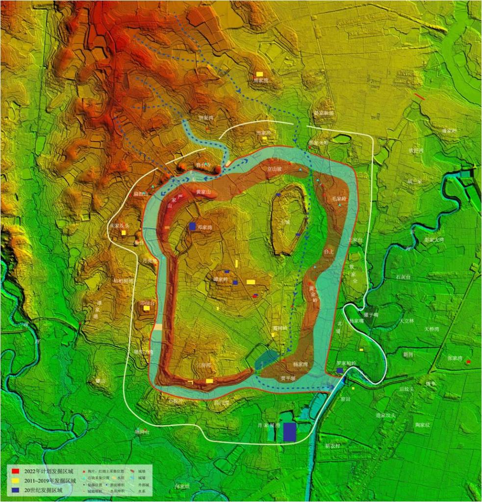 石家河古城外郭城示意图。湖北省文物考古研究院供图
