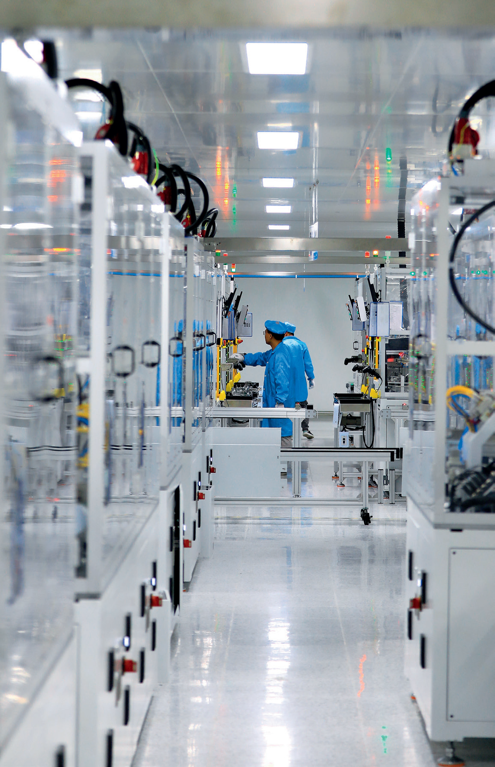 在位于新郑市的郑州电子信息产业园,SIP 芯片研制及高端封测生产基地内的生产车间(2022年9月20日摄)唐强摄