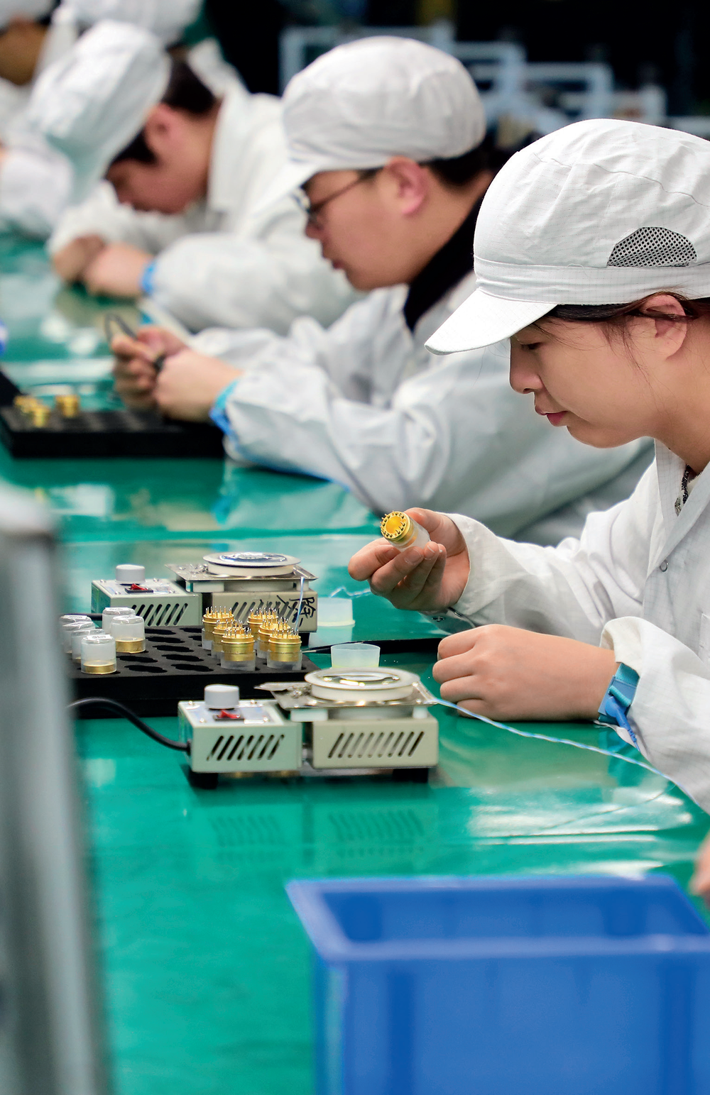 工人在位于郑州的中国电子科技集团公司第二十七研究所生产线上作业(2023年2月20日摄) 李新华摄