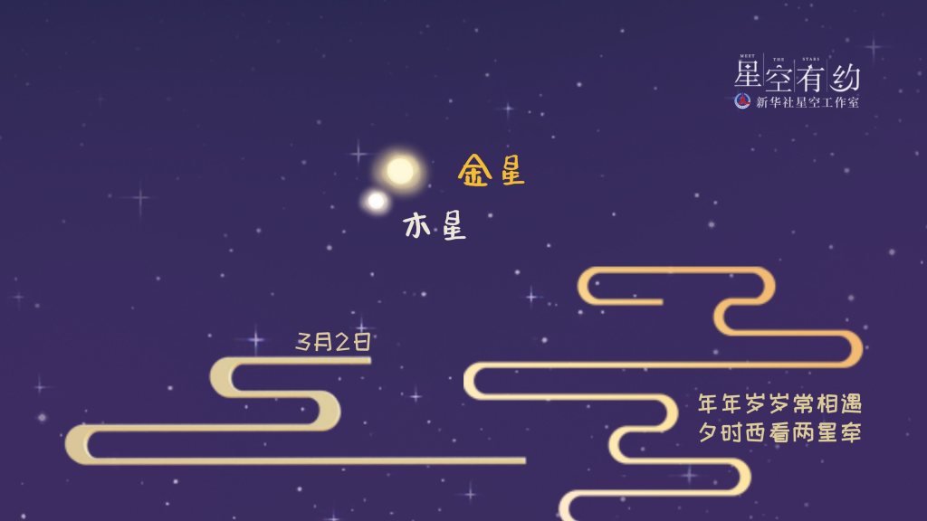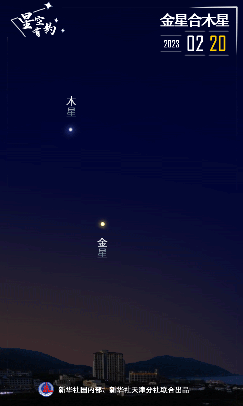 新华社天津2月28日电(记者周润健)夜空中“最亮”的两颗星星——金星与木星“浪漫相拥”是一种怎样的视觉感受?机会来了。3月2日傍晚时分,这两颗明亮的天体会在西方天空近距离相合,上演“星星相吸”。