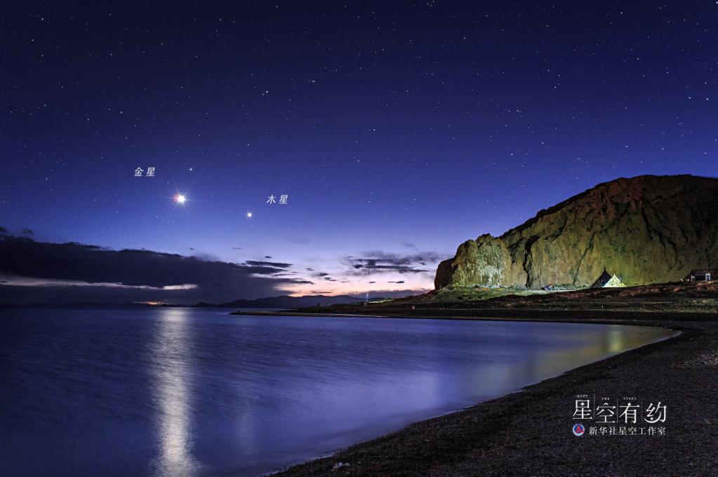 重庆市天文爱好者戴建峰2015年7月5日傍晚在西藏纳木错拍摄的金木相伴。(本人供图)