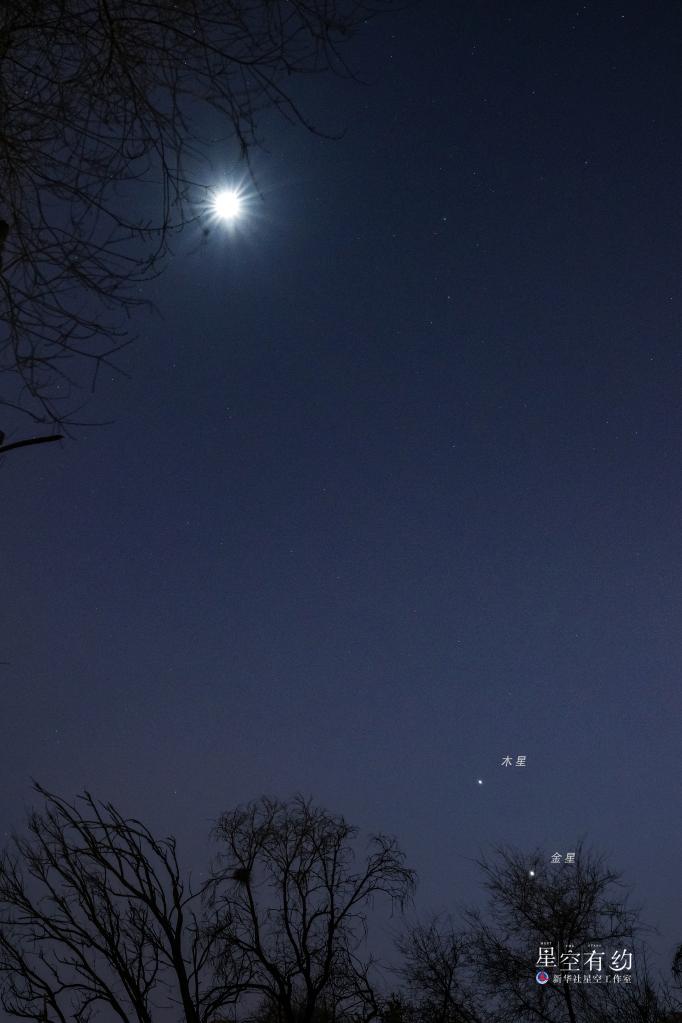 “因为距离太阳和地球比较近,金星运行的速度较快,而木星距离太阳和地球比较远,运行的速度稍慢,所以在本次相合之后,这两颗行星会‘分道扬镳’,看起来渐行渐远。如果这段时间里能够坚持每天在同一时间对它们进行拍摄的话,就能发现它们的运动轨迹呈一个‘X’形。”修立鹏说。