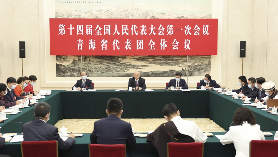 3月7日,中共中央政治局常委、中央书记处书记蔡奇参加十四届全国人大一次会议青海代表团的审议。新华社记者 丁林 摄