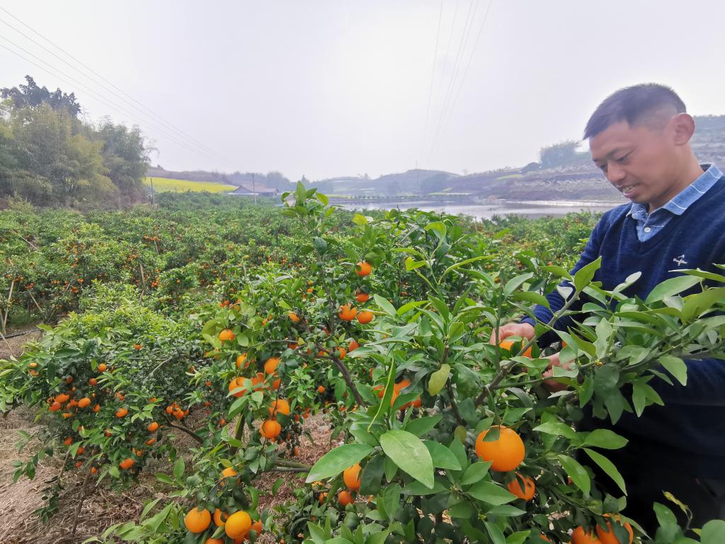 在天宫庙村管护果园的返乡“新农人”黄吉彬笑着告诉记者:“60亩沃柑即将上市,平均亩产约6000斤,有老板出价2元一斤收购,我都没舍得卖,再等半个月左右,卖个好价钱。”