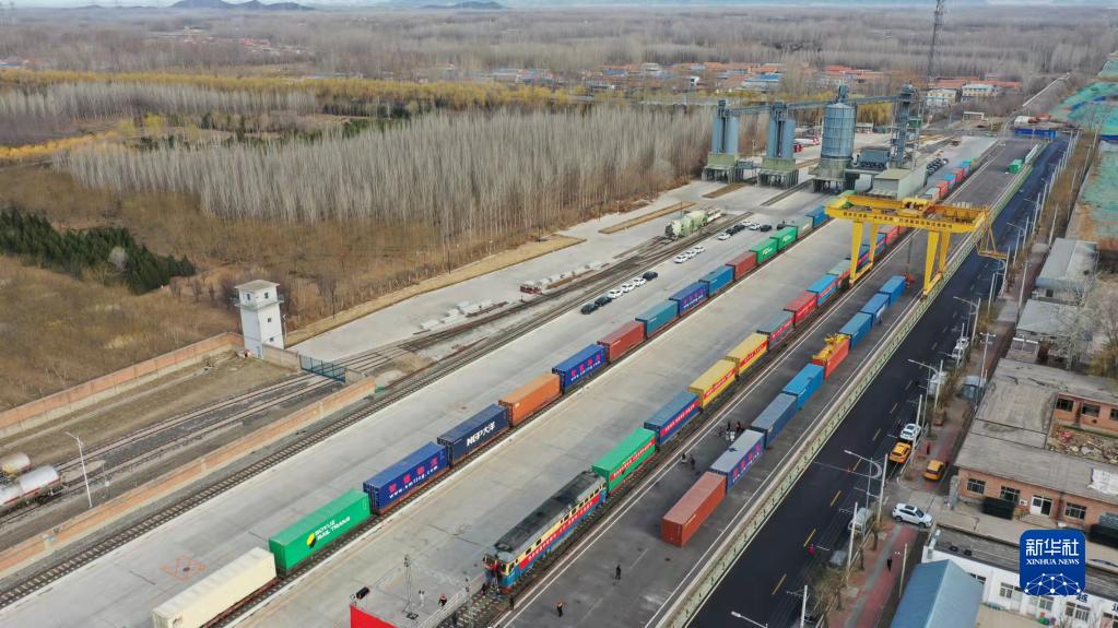 3月16日,在平谷地方铁路马坊站,京平综合物流枢纽中欧班列(北京-莫斯科)发车。新华社记者 任超 摄