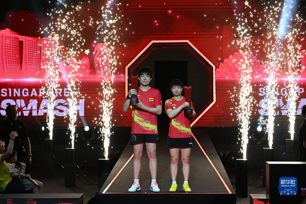 当日,在WTT新加坡大满贯混双决赛中,中国组合王楚钦/孙颖莎以3比1战胜日本组合张本智和/早田希娜,夺得冠军。
