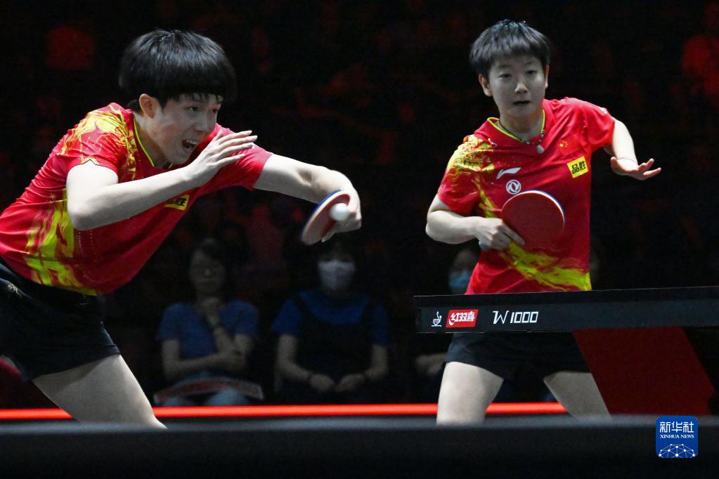 3月16日,王楚钦(左)/孙颖莎在比赛中。新华社发(邓智炜摄)