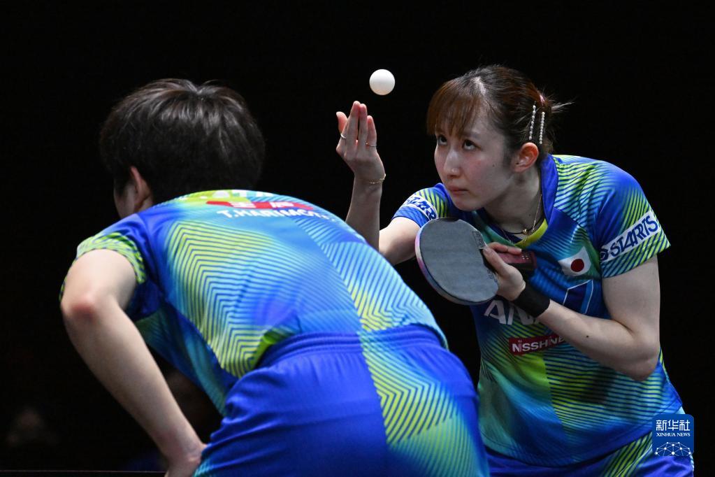 3月16日,张本智和/早田希娜(右)在比赛中。新华社发(邓智炜摄)