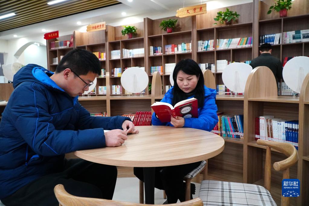 3月16日,在山东省菏泽鲁西新区岳程街道,居民在“牡丹书房”里阅读书籍。