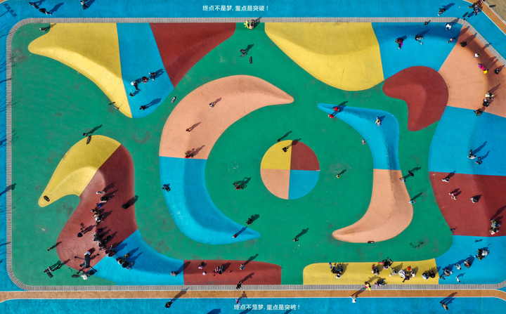 ↑市民在江苏省昆山市周市镇城市运动广场上运动。新华社记者杨磊摄