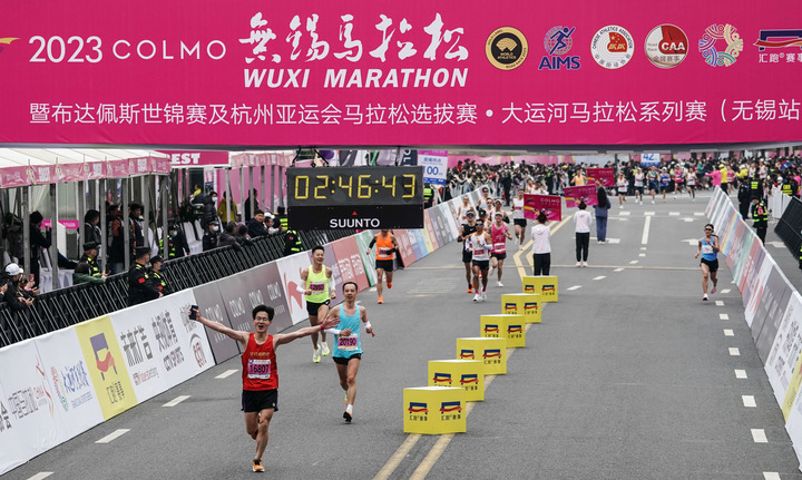↑2023无锡马拉松有1262名选手“破3”。新华社记者杨磊摄
