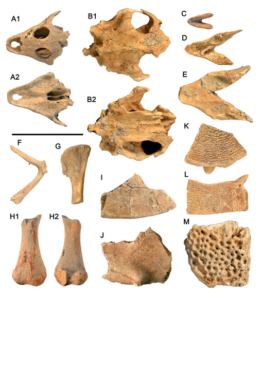 广西左江流域发现的动物骨骼(拼版资料照片)。新华社发(广西文物保护与考古研究所 供图)