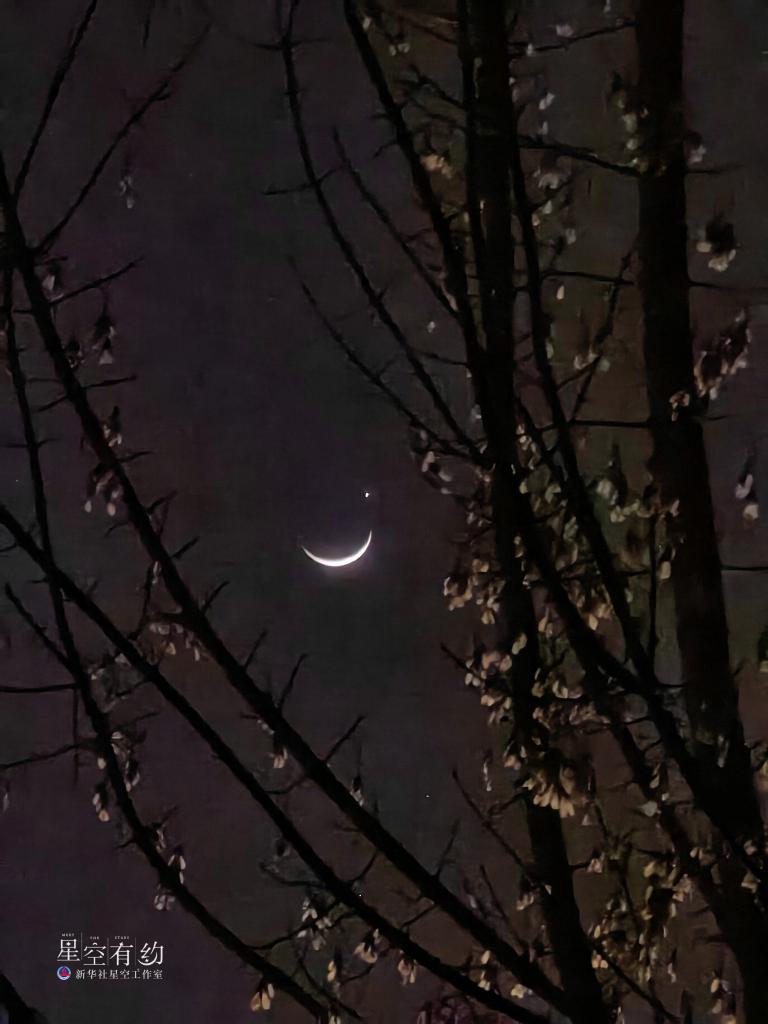 天津市天文摄影爱好者杨婧2023年3月24日傍晚在天津市河西区拍摄的金星伴月。(本人供图)
