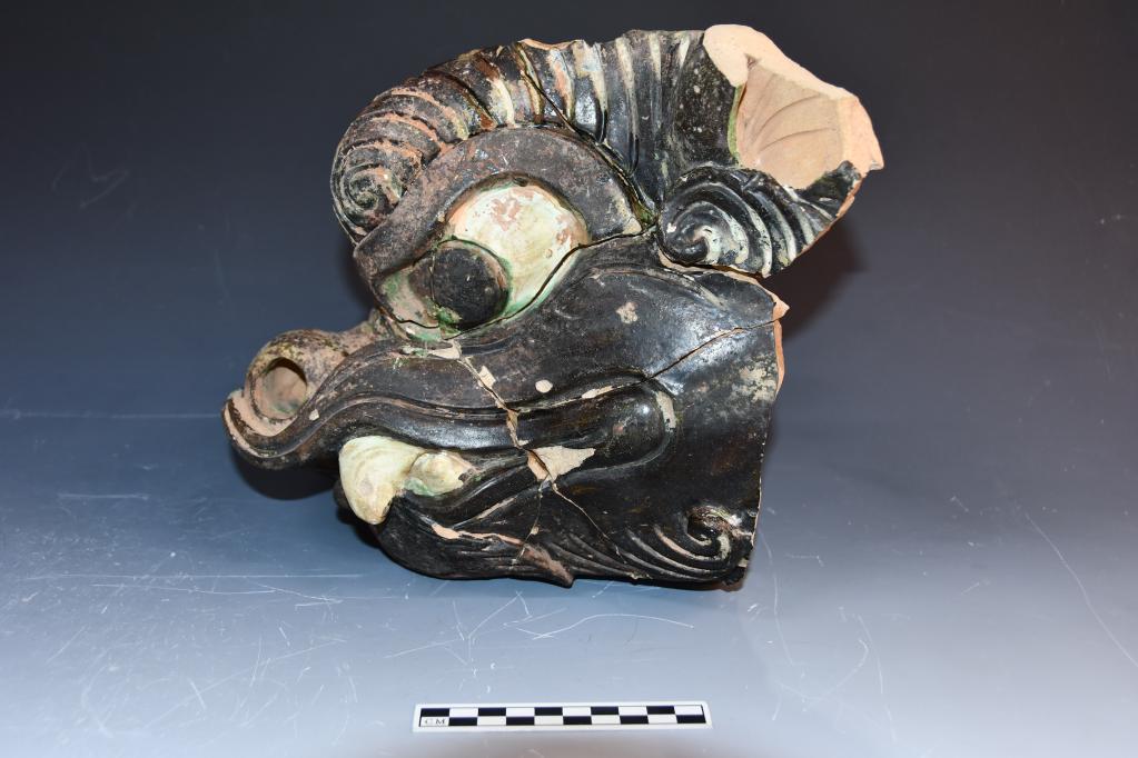 高陵西侧出土的北宋釉陶龙头形建筑构件。(河南省文物考古研究院供图)