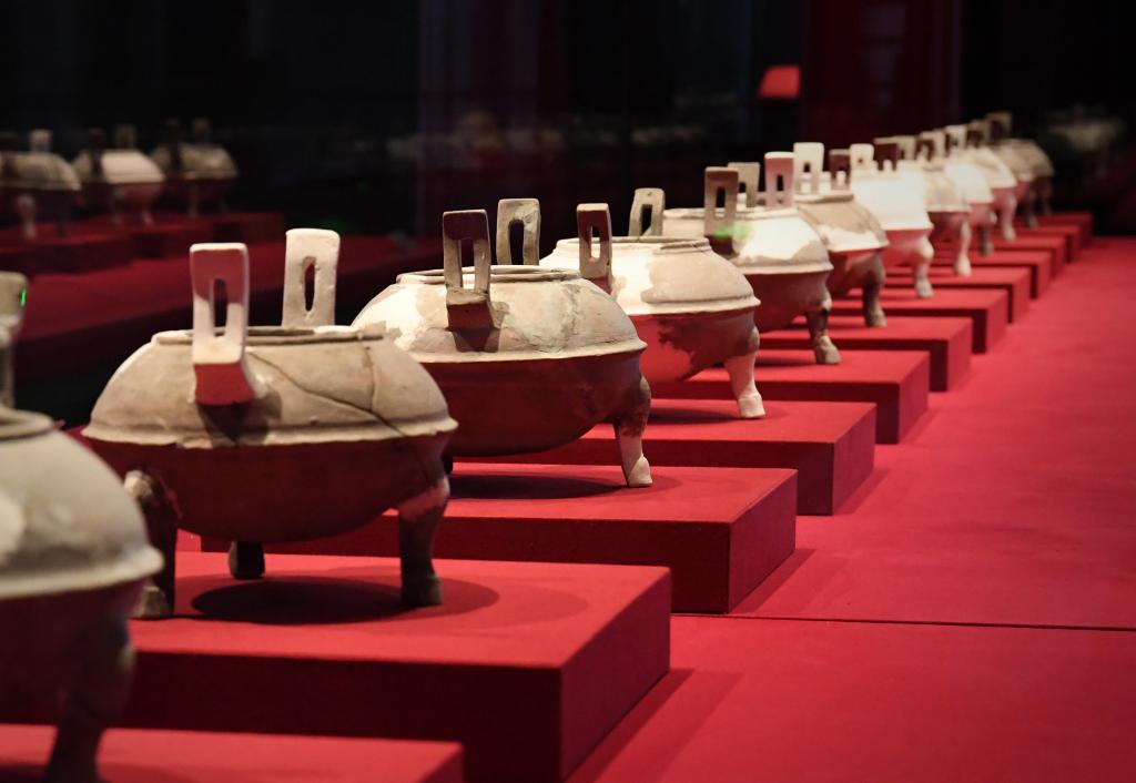 曹操墓出土的陶鼎(2023年4月22日摄)。新华社记者李安 摄