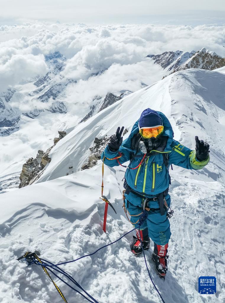 董红娟在海拔8027米的希夏邦马峰顶(4月26日摄)。新华社发(顿巴 摄)