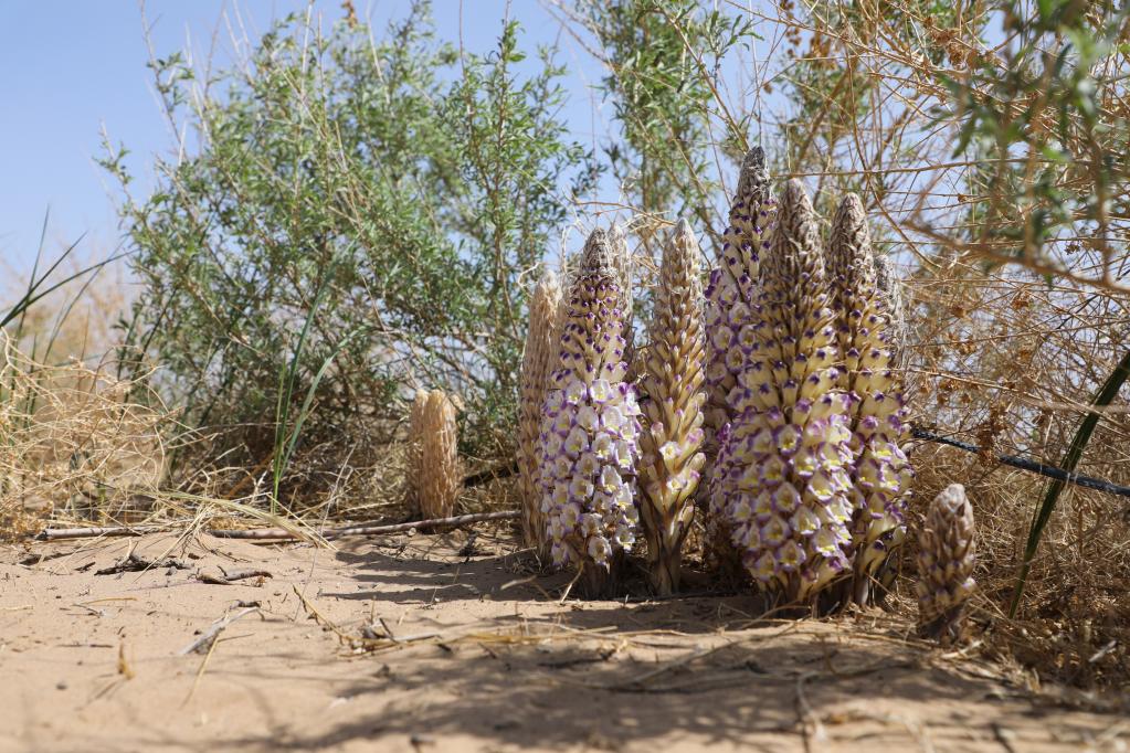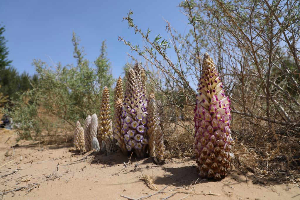 记者在四翅滨藜肉苁蓉试种基地看到,一株株四翅滨藜绿意盈盈,在其根部生长的一排排肉苁蓉破土而出,一株最多长出40多株肉苁蓉,五颜六色的肉苁蓉花竞相开放,成为一道美丽的风景。