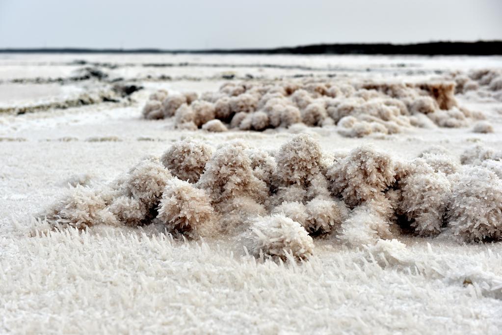 随着气温下降,运城盐湖出现“硝花”景观。(2018年1月5日摄)新华社记者 詹彦 摄