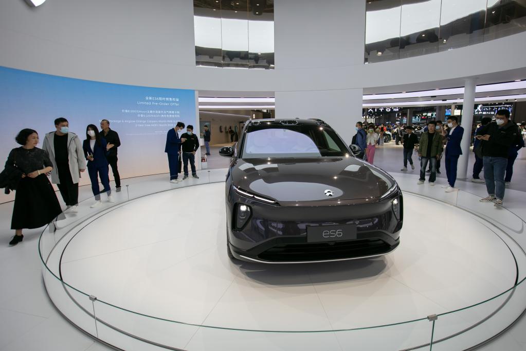 4月25日,人们在上海车展上参观正式首发亮相的蔚来全新ES6。新华社记者王翔摄