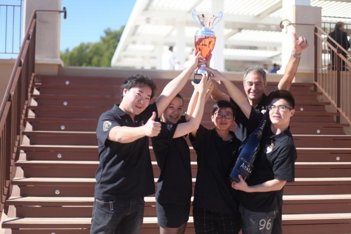 2016年10月8日,在法国南部普罗旺斯举办的第四届“RVF葡萄酒盲品世界锦标赛”上,中国队夺冠后合影。新华社发(RVF葡萄酒盲品世锦赛供图)