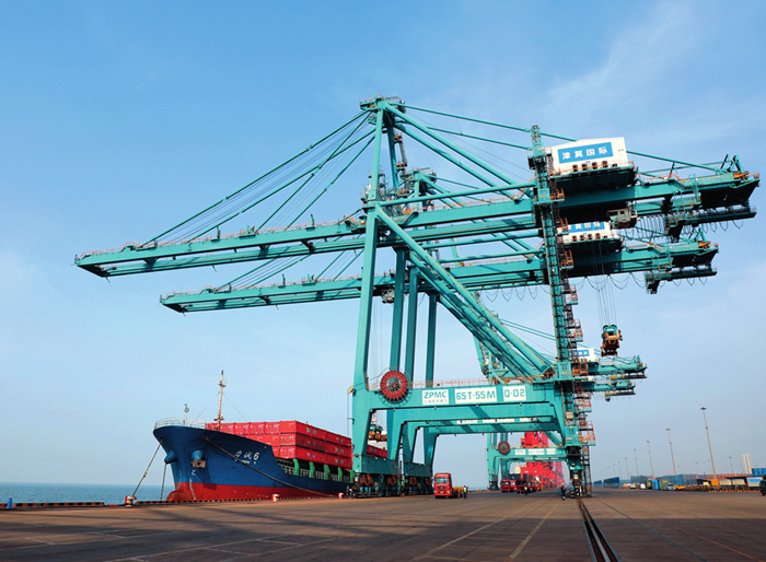 船舶停靠在河北黄骅港综合港区集装箱码头进行卸船作业(2023年3月9日摄)。骆学峰摄/本刊